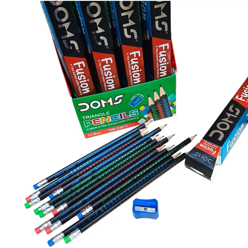 بسته 12 عددی مداد مشکی Doms پاکن دار هولوگرامی دامس طرح fusion +تراش