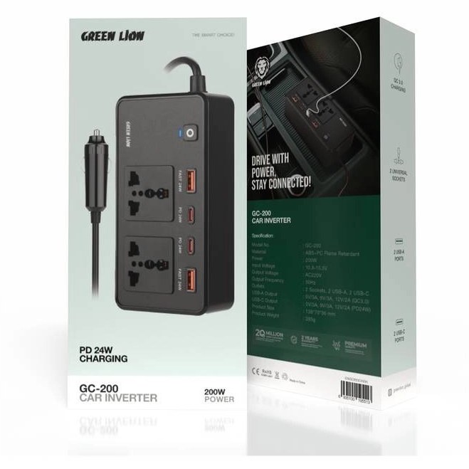 مبدل برق خودرو Green Lion GC-200 – شارژ مطمئن در سفر و حرکتGC-200 همراهی ایدهآل برای سفرهای جادهای و استفاده در خودرو است. بدنه مقاوم و نسوز ABS + PC، ایمنی و دوام بالا را تضمین میکند. این اینورتر با ورودی ۱۰.۸ تا ۱۵.۵ ولت، خروجی پایدار ۲۲۰ ولت AC و فرکانس ۵۰ هرتز دارد و برای روشن کردن انواع دستگاهها ایدهآل است.دو پریز یونیورسال، دو پورت USB-A و دو پورت USB-C برای شارژ همزمان چند دستگاهشارژ سریع با USB-A تا ۱۲ ولت ۲ آمپر و USB-C PD تا ۲۴ واتفناوری QC 3.0 برای حداکثر سرعت شارژ دستگاههای پشتیبانیشدهGC-200 با ابعاد جمعوجور و عملکرد قدرتمند، انتخابی امن، مطمئن و حرفهای برای هر سفر و ماجراجویی شماست. همین حالا دستگاههای خود را با سرعت و امنیت شارژ کنید!