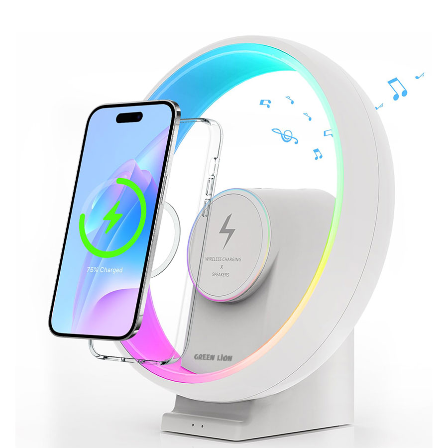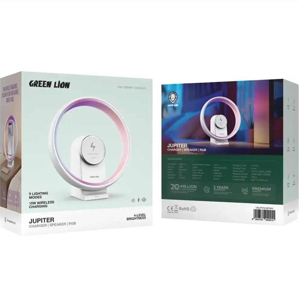 اسپیکر و چراغ رومیزی Green Lion Jupiter – موسیقی، نور و شارژ در یک دستگاهJupiter ترکیبی هوشمند از صدای شفاف، نور دلنشین و شارژ سریع گوشی در یک گجت جمعوجور است.اسپیکر ۵ وات با بلوتوث ۵.۲ و برد ۲۰ متر۱۰۰ چراغ RGB LED با ۹ حالت رنگی و دمای ۳۰۰۰ کلوین، شدت روشنایی ۵۰ تا ۳۰۰ لومنباتری ۱۸۰۰ میلیآمپر ساعتی با دوام بیش از ۲ ساعت و شارژ سریع Type-C در ۱.۵ ساعتشارژ بیسیم سریع ۱۵ وات برای گوشیبدنه مقاوم ABS، طراحی مینیمال و وزن ۷۰۰ گرمGreen Lion Jupiter، گجتی شیک و کاربردی برای خانه، محل کار یا سفر است. همین حالا تجربه نور، موسیقی و شارژ سریع را در یک دستگاه داشته باشید!