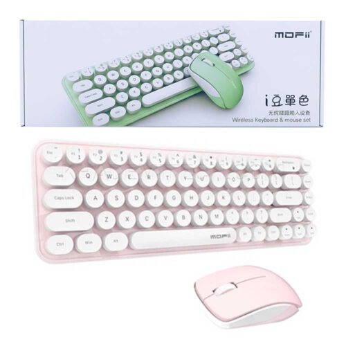 کیبورد و ماوس بی سیم مافی مدل MOFII IBEAN PURE سفید صورتی