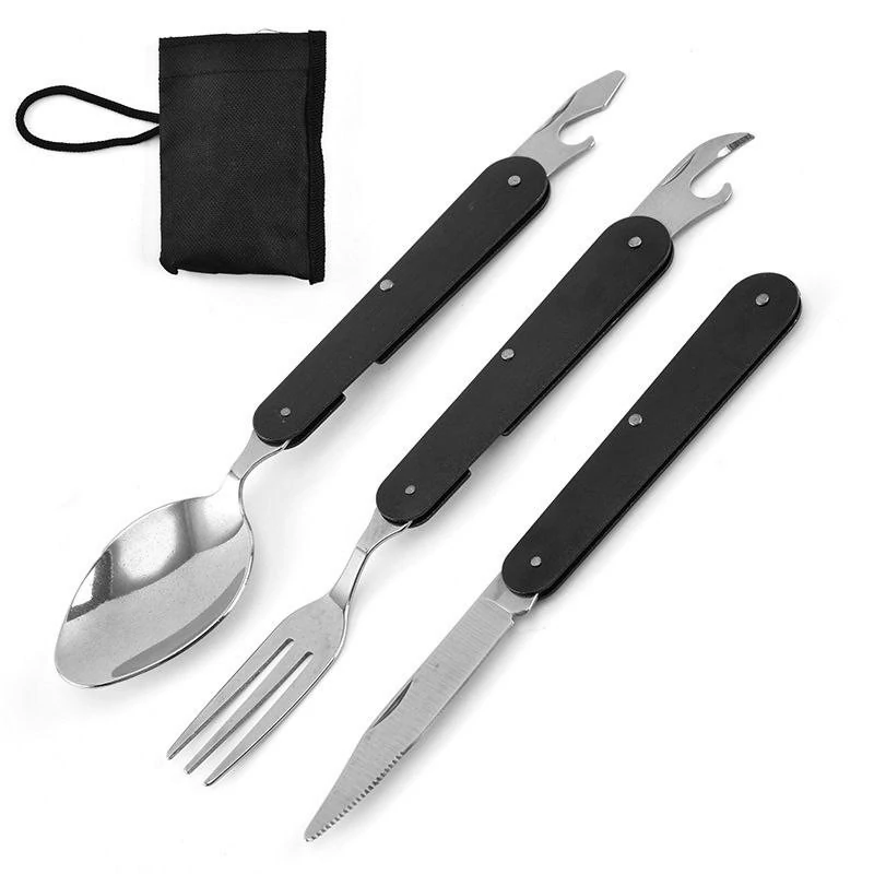 ست قاشق و چنگال و چاقو فلزی کمپینگ
