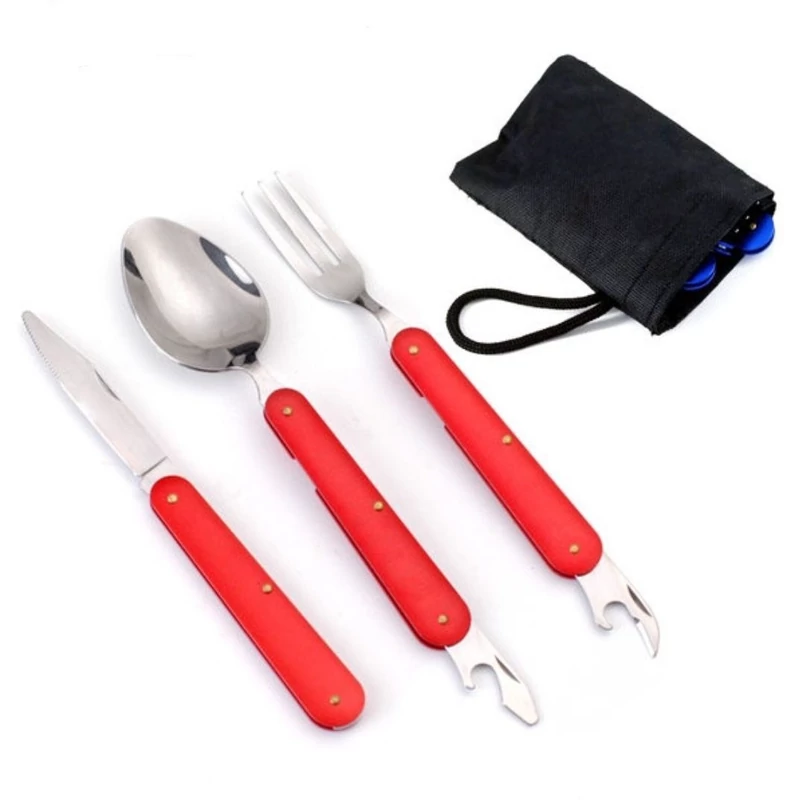 ست قاشق و چنگال چاقو سه تیکه مسافرتی رنگی