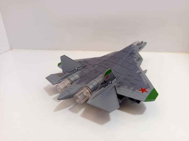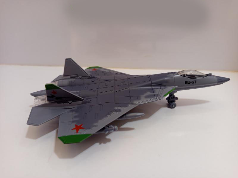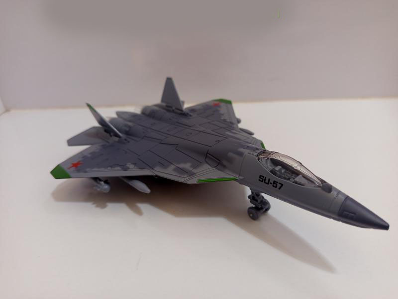 ماکت هواپیما جنگنده سوخو SU-57 طوسی فلزی موزیکال چراغدار عقبکش مقیاس ۱:۷۲