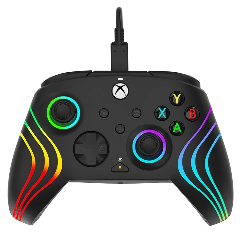 کنترلر RGB ایکس باکس PDP مدل Afterglow Wave طول کابل: ۲.۴ متر جک ۳.۵ میلی متری: دارای جک هدفون ۳.۵ میلی متری برای خروجی صدا و یک میکروفون داخلی برای ورودی صدا است مدل سازگار:برای مایکروسافت ایکس باکس سری ایکس، ایکس باکس وان، کامپیوتر شخصی ، برای مایکروسافت ایکس باکس سری اس(Xbox Series X/S، Xbox One و Windows PC)