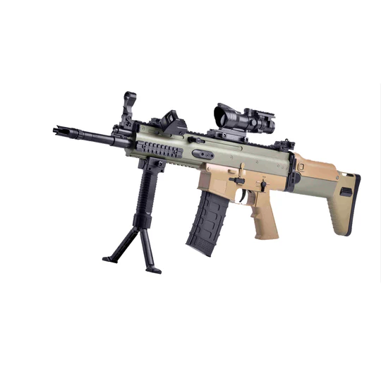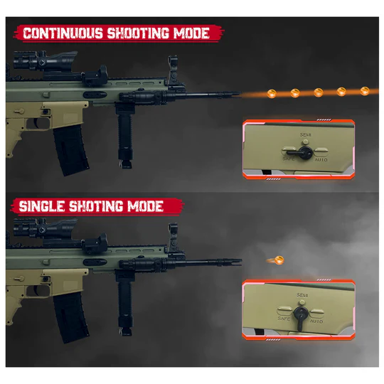 اسلحه اسباببازی شارژی مدل XS/1806، یک تفنگ جذاب و هیجانانگیز برای کودکان و نوجوانان است که با طراحی مدرن و عملکرد شارژی، تجربه بازی پرهیجان و ایمنی را فراهم میکند. این اسلحه با قابلیت شلیک سریع و دقیق، گزینهای عالی برای رقابتهای دوستانه و بازیهای گروهی به شمار میرود. بدنه سبک و خوشدست، همراه با دقت بالا در طراحی و کیفیت ساخت مناسب، امکان استفاده آسان و طولانی مدت را فراهم کرده است. باتری شارژی این اسلحه، امکان بازی مداوم بدون نیاز به تعویض باتری را به کودک میدهد.ویژگیهای محصول: طراحی مدرن و خوشدست قابلیت شلیک سریع و دقیق باتری شارژی با طول عمر مناسب ساخته شده از مواد با کیفیت و ایمن مناسب برای بازیهای گروهی و رقابتی مناسب برای کودکان بالای ۸ سال تفنگ اسباب بازی تیرژله ای مدل SCAR_L اسکار ال با طراحی فوق العاده و دوربین قابل تنظیم از موارد قابل ذکر این است طول برد این سلاح بیش از 30 متر است